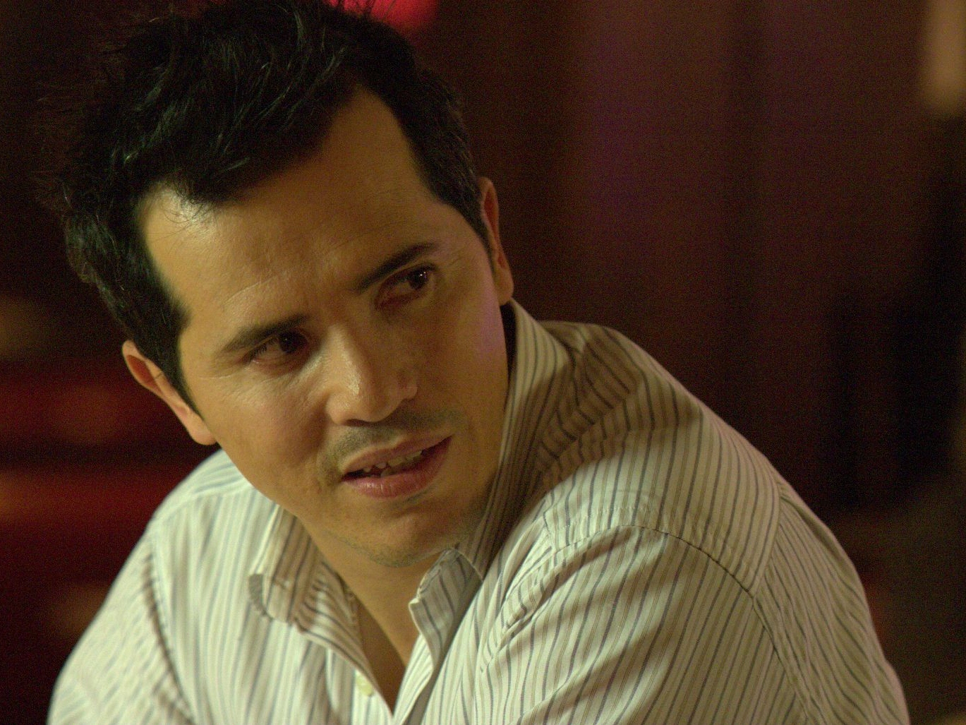 Description: A man with a mustache and a shirt on sitting down with his hands on his hips and looking at the camera.