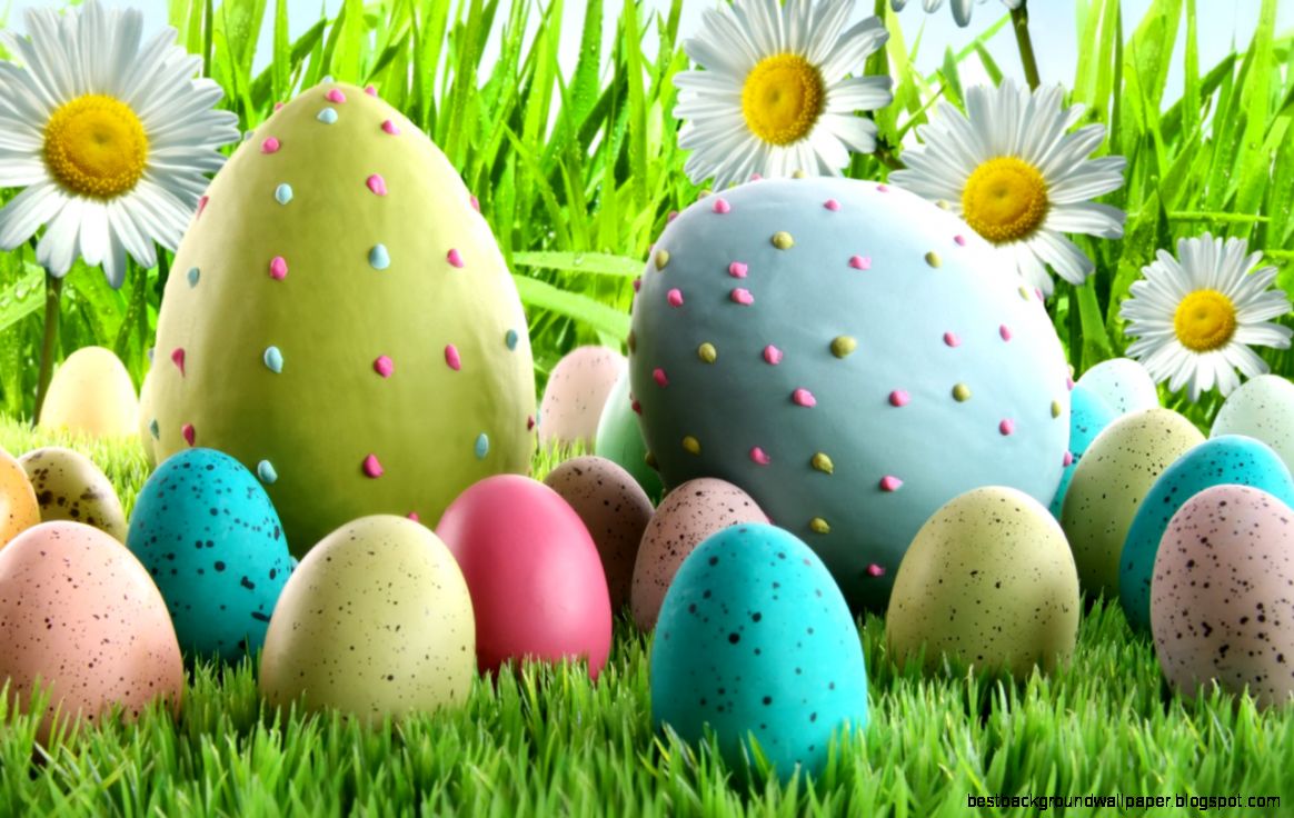 Description: A group of eggs sitting in the grass with daisies in the background and daisies in the foreground.
