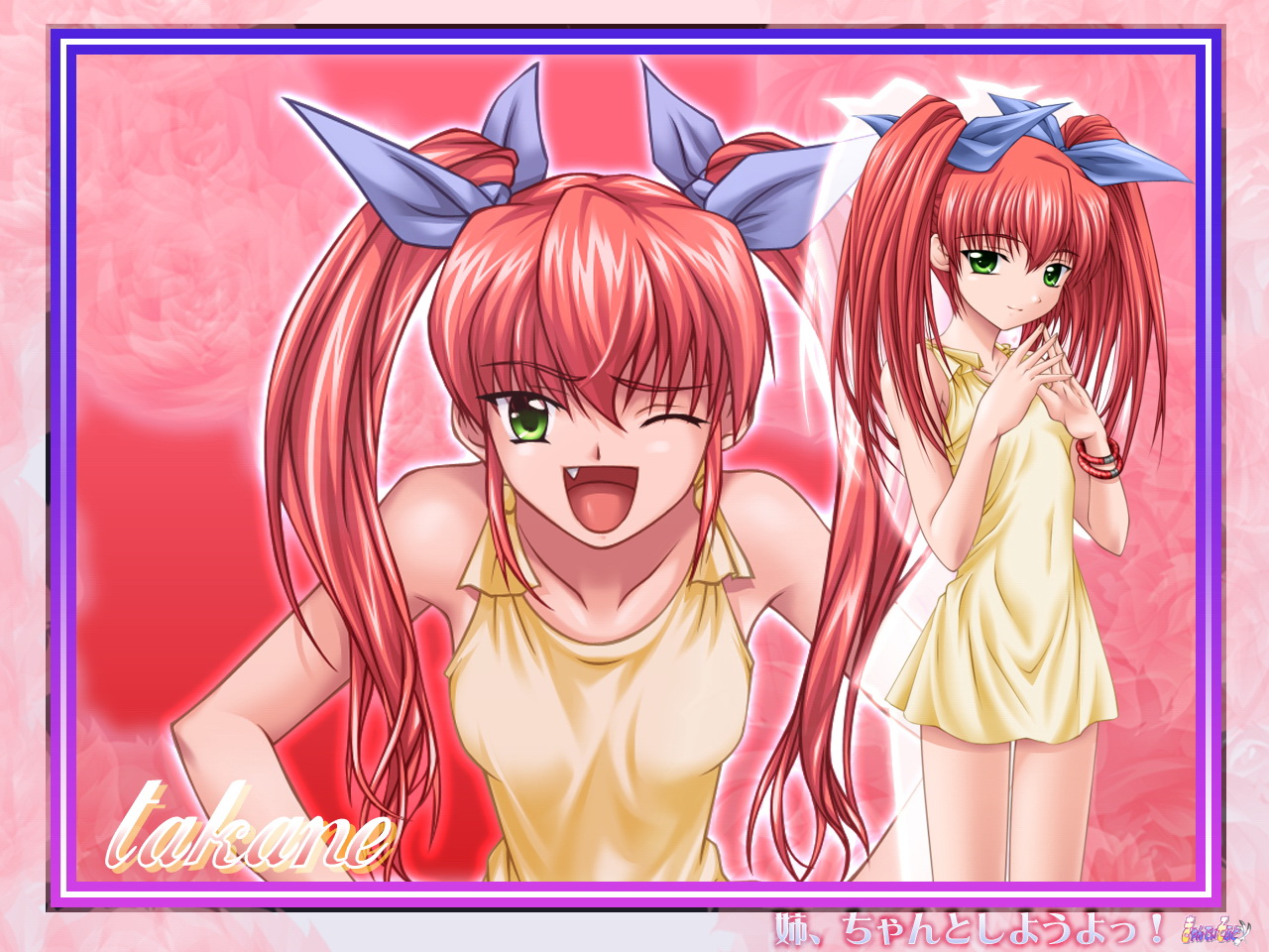Description: Two anime girls with long hair and bows on their heads.