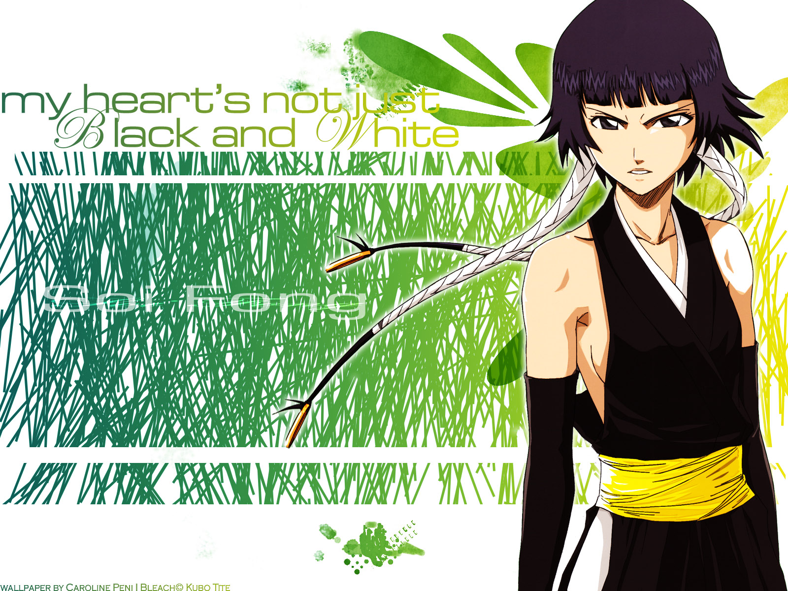 Description: A woman with black hair and a yellow belt standing in front of a green and white background with a plant.
