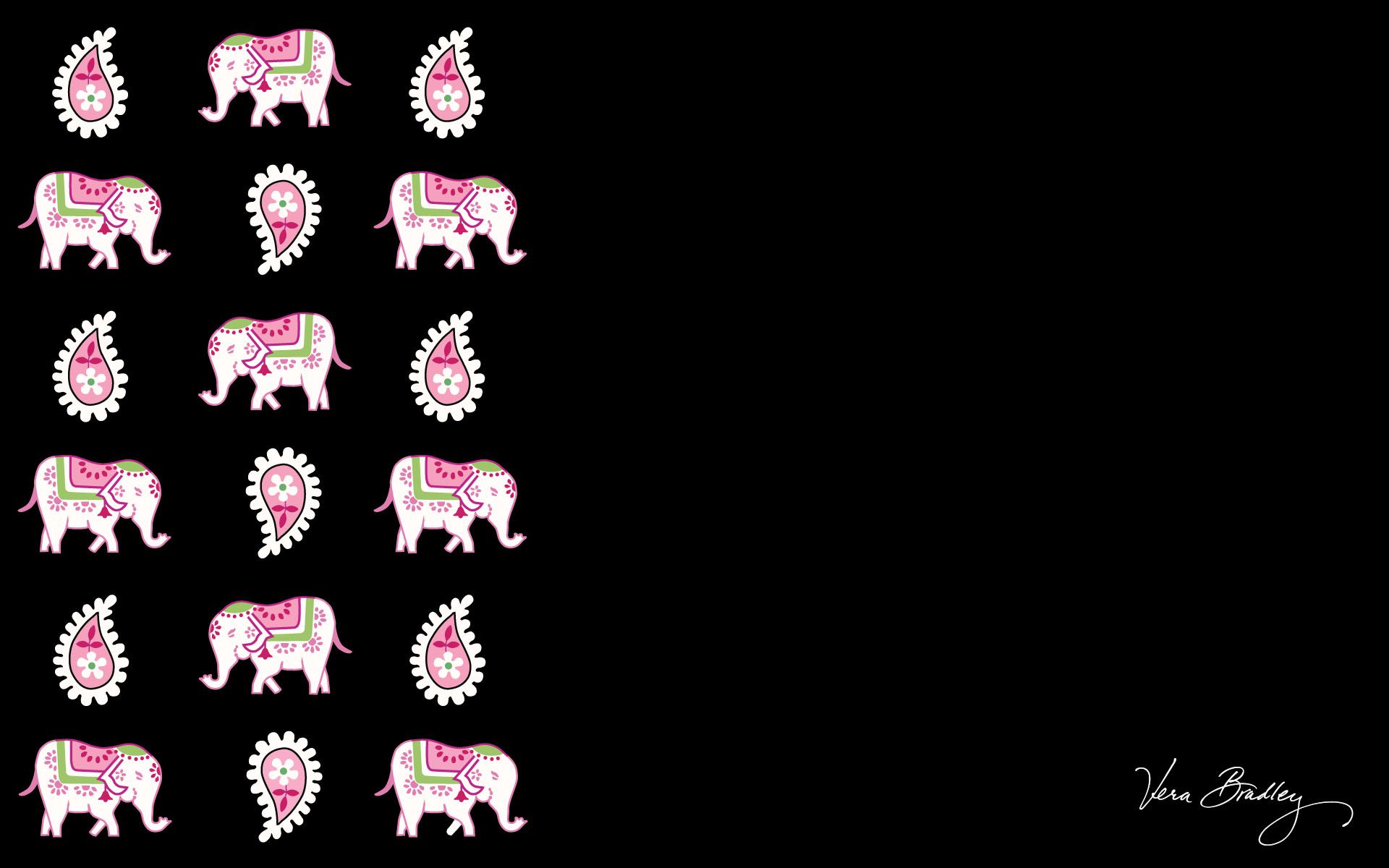 Description: A group of elephants with pink and white designs on them's backs and tails.