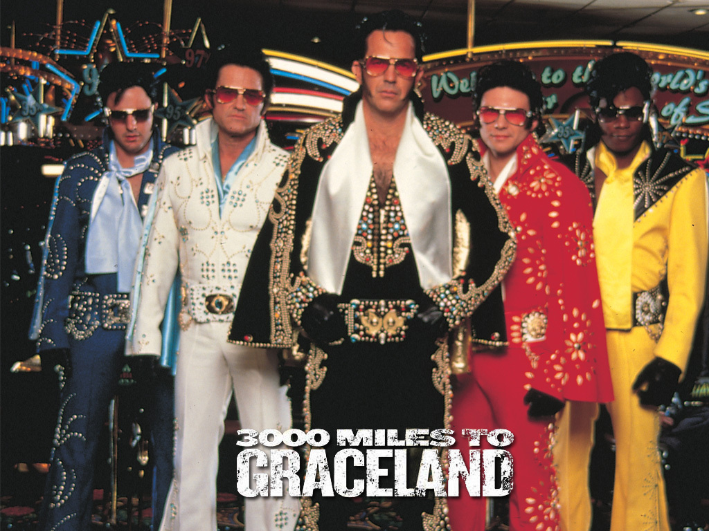 Description: A group of men in elvis costumes standing next to each other in front of a store window with a sign that says 500 miles to graceland.