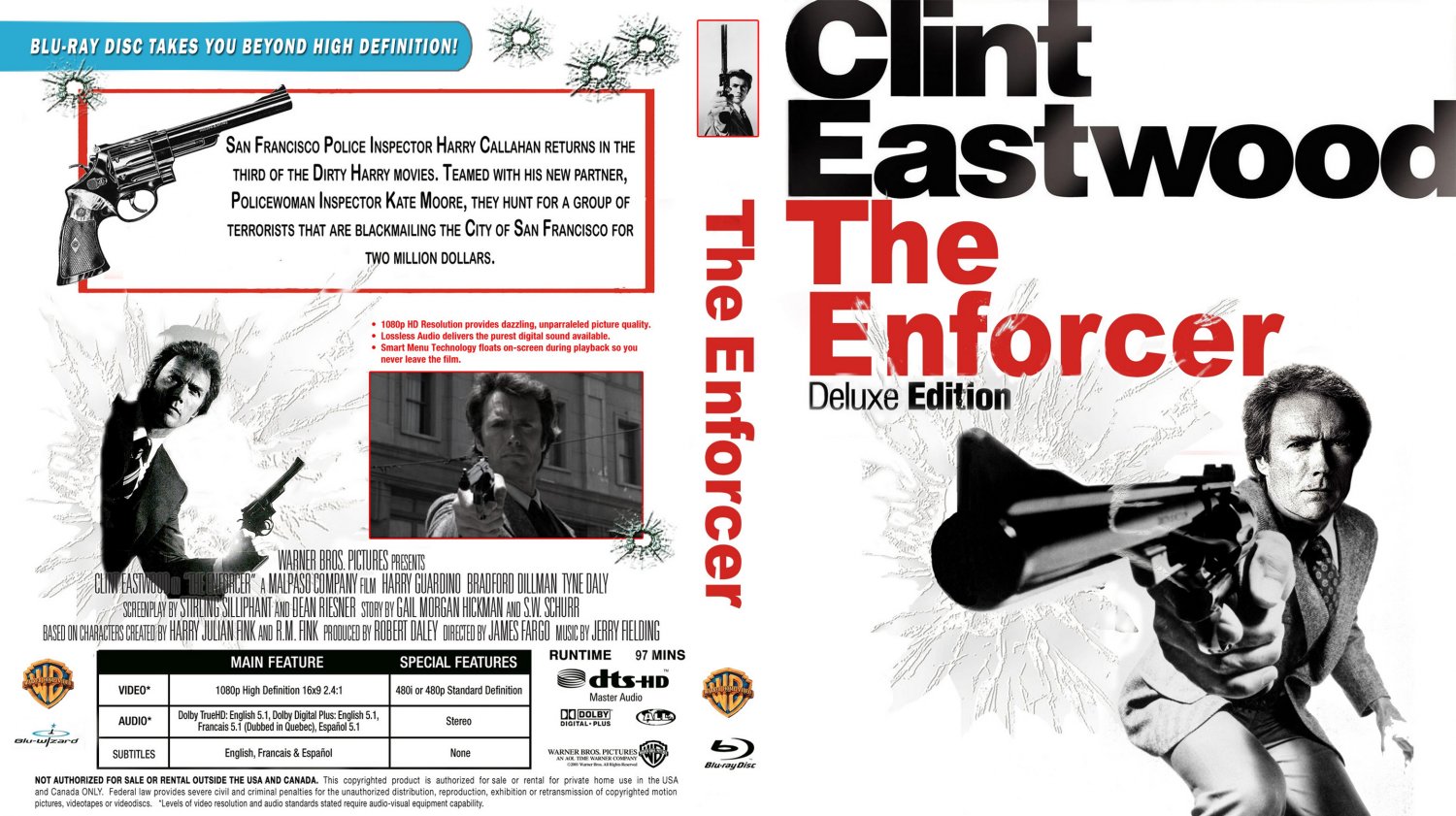 Description: A dvd cover for the enforcementer with a gun and a woman holding a gun in her hand and another man holding a gun.