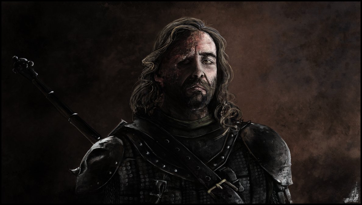 Description: A man with a sword and armor on a dark background with smoke and dust behind him.