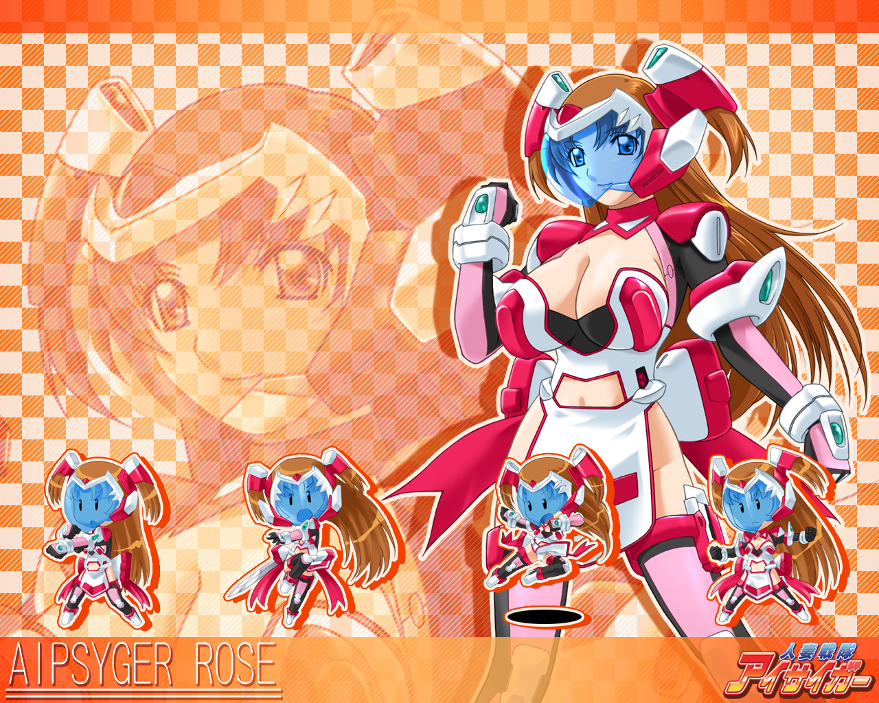 Description: A cartoon character with a red and white outfit and a red and white background with a checkered background.