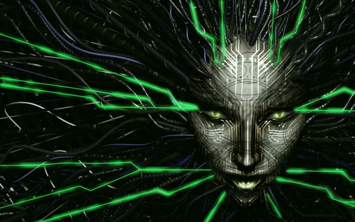 Description: A digital image of a face with green and blue lines coming out of it's eyes and head.