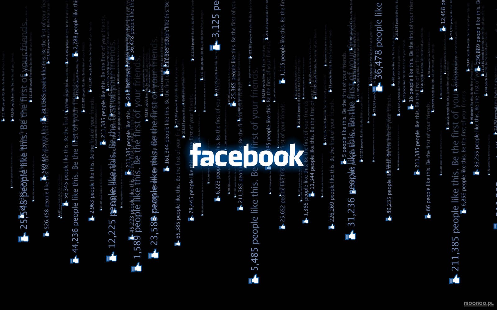 Description: A dark background with a facebook logo surrounded by words that spell out facebook's name and the word facebook.