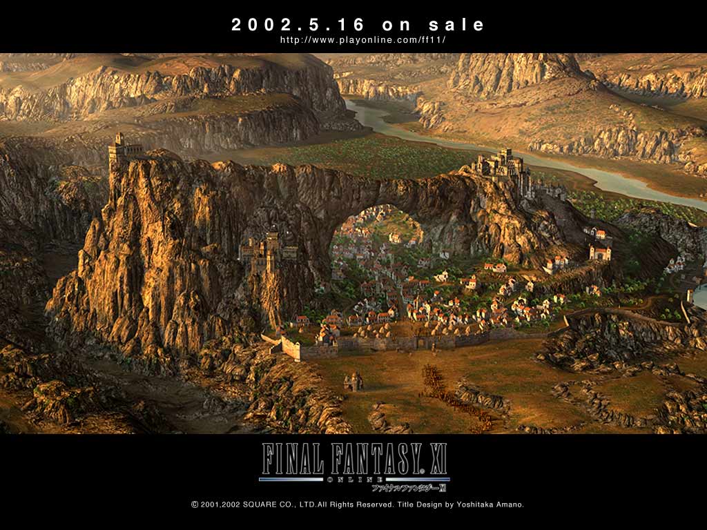Description: A computer generated image of a fantasy landscape with a bridge and a river in the middle of the picture.