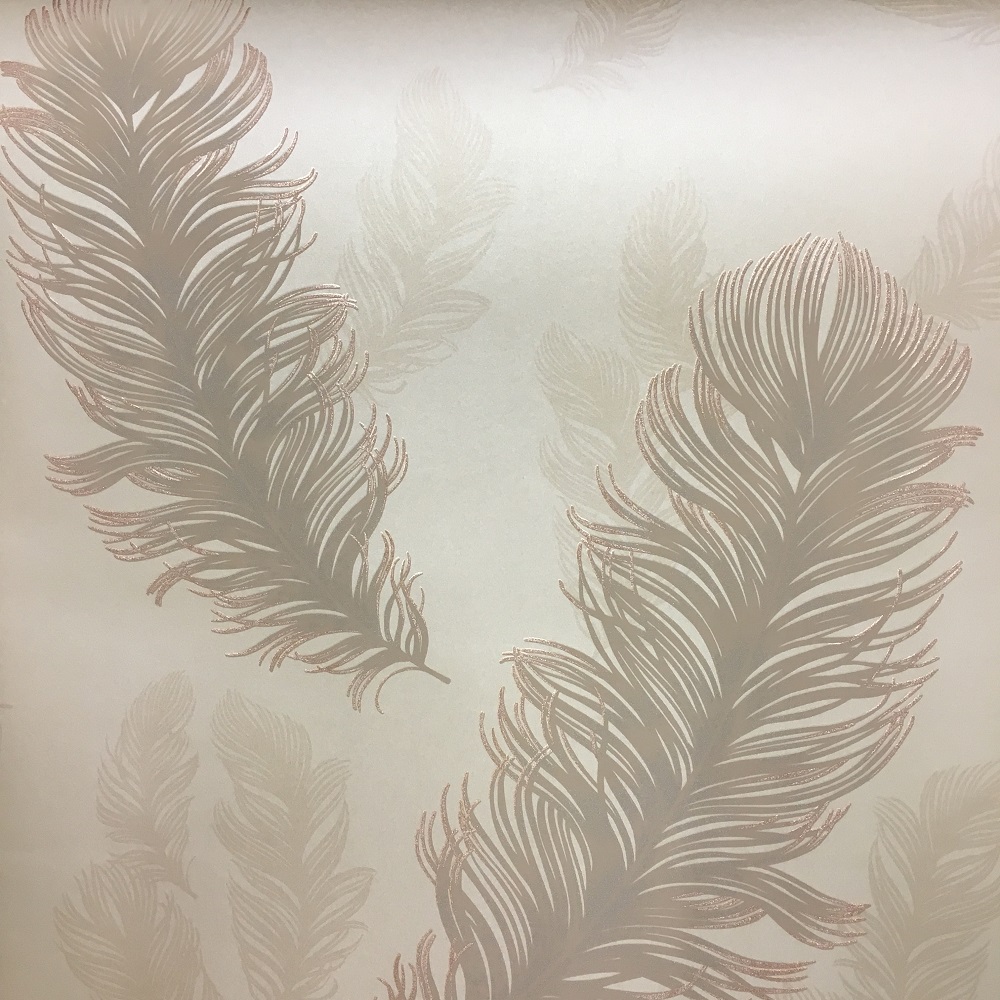 Description: A wall with a pattern of feathers on it's side and a white background with a brown border.