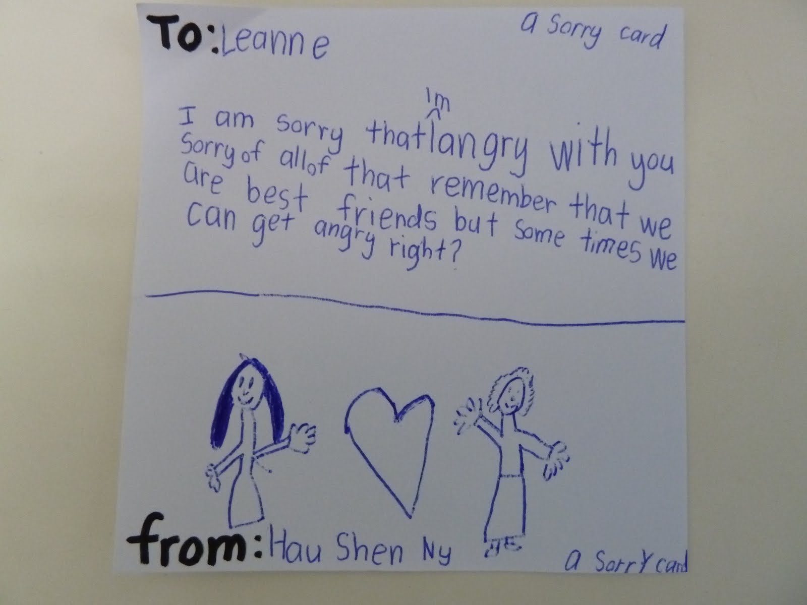 Description: A note written to someone about their feelings and feelings on a wall with a drawing of a woman and a man.
