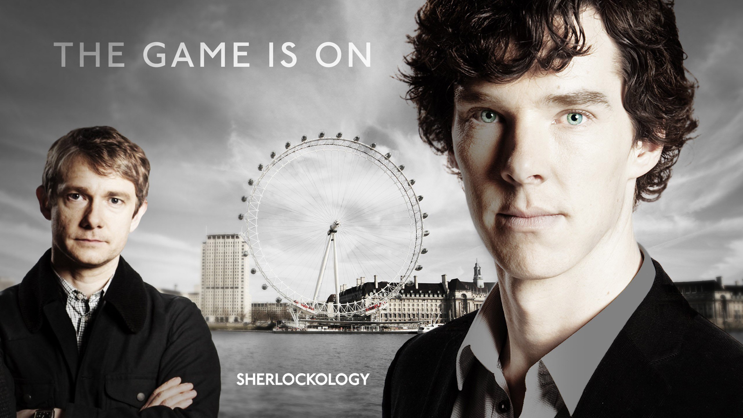 Description: A man and a woman standing in front of a ferris wheel with the words the game is on in the background.