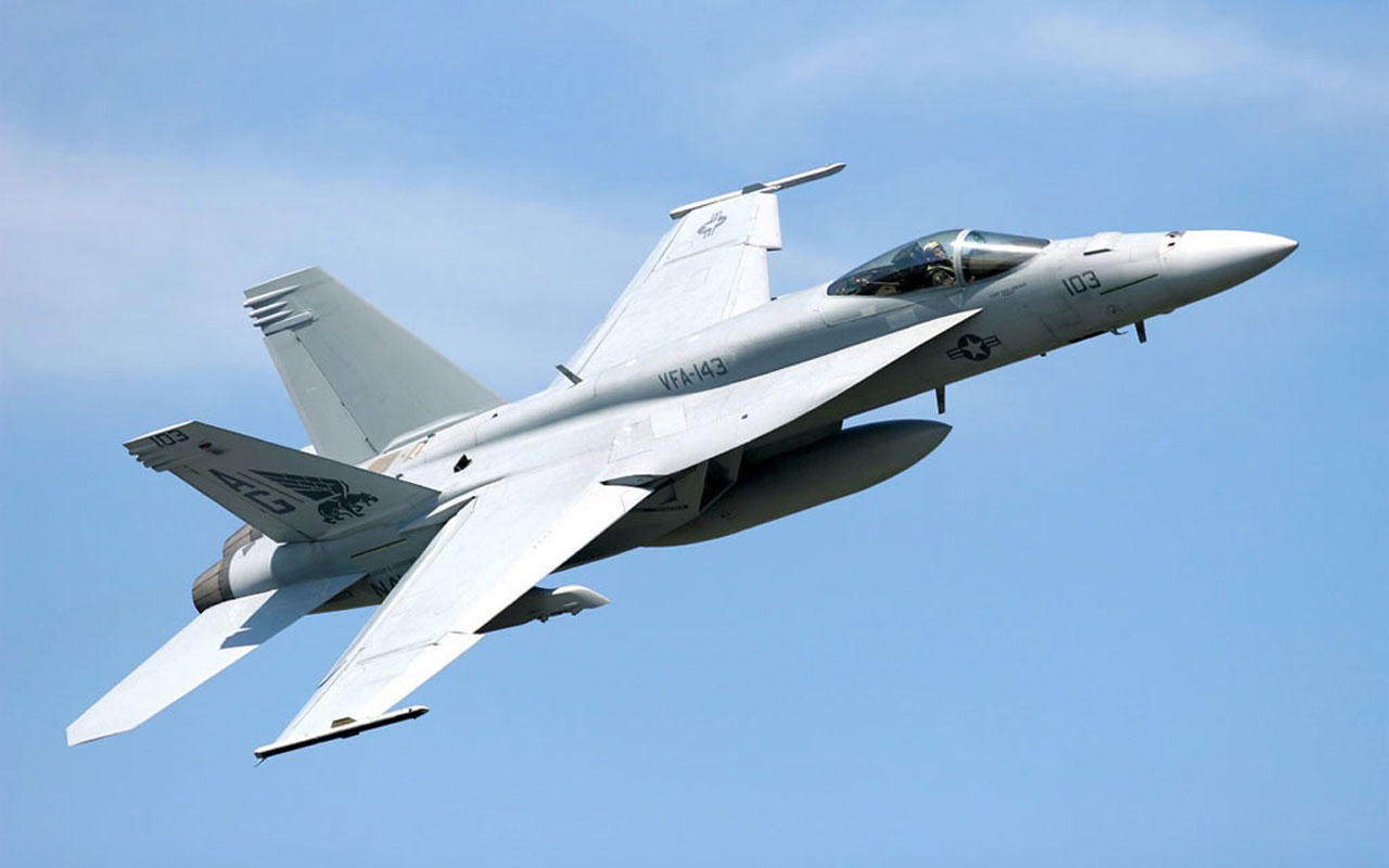Description: A fighter jet flying through a blue sky with clouds in the background and a jet fighter on the left side.