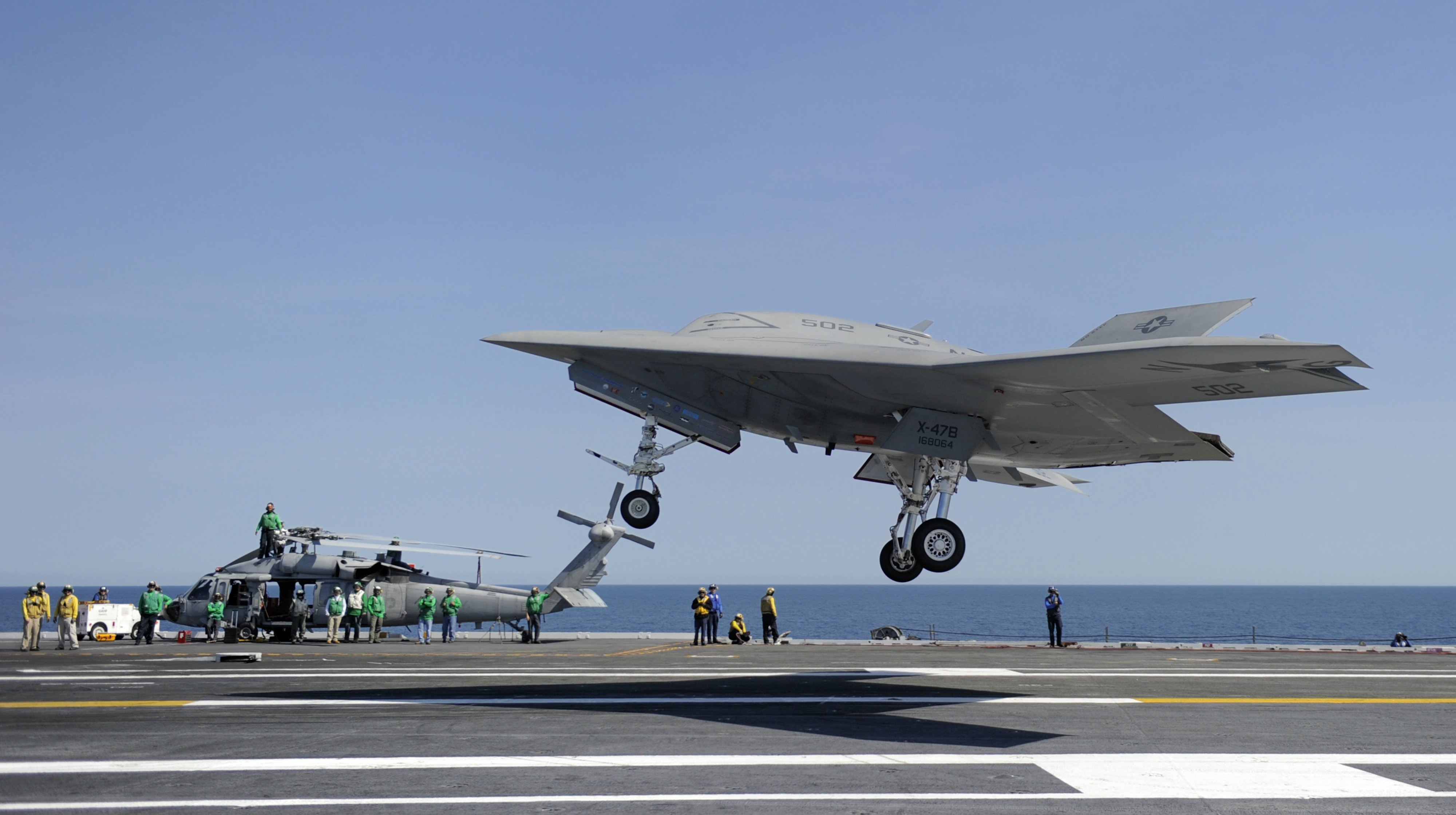 Description: A fighter jet is taking off from an aircraft carrier on the flight deck of an aircraft carrier carrier on the flight deck of an aircraft carrier carrier carrier.
