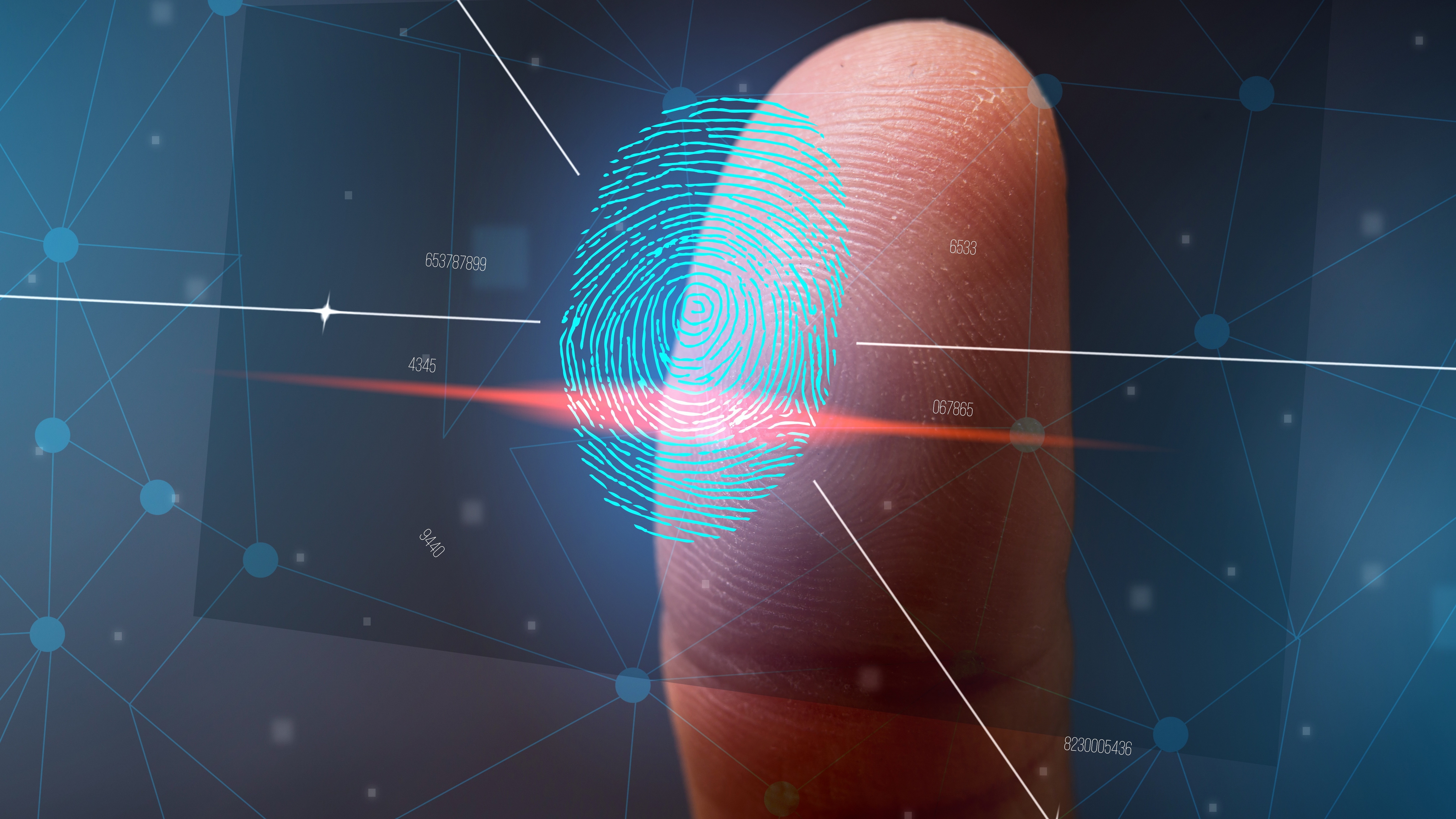 Description: A fingerprint is being shown on a screen with a red line going through it and a red line going through the screen.