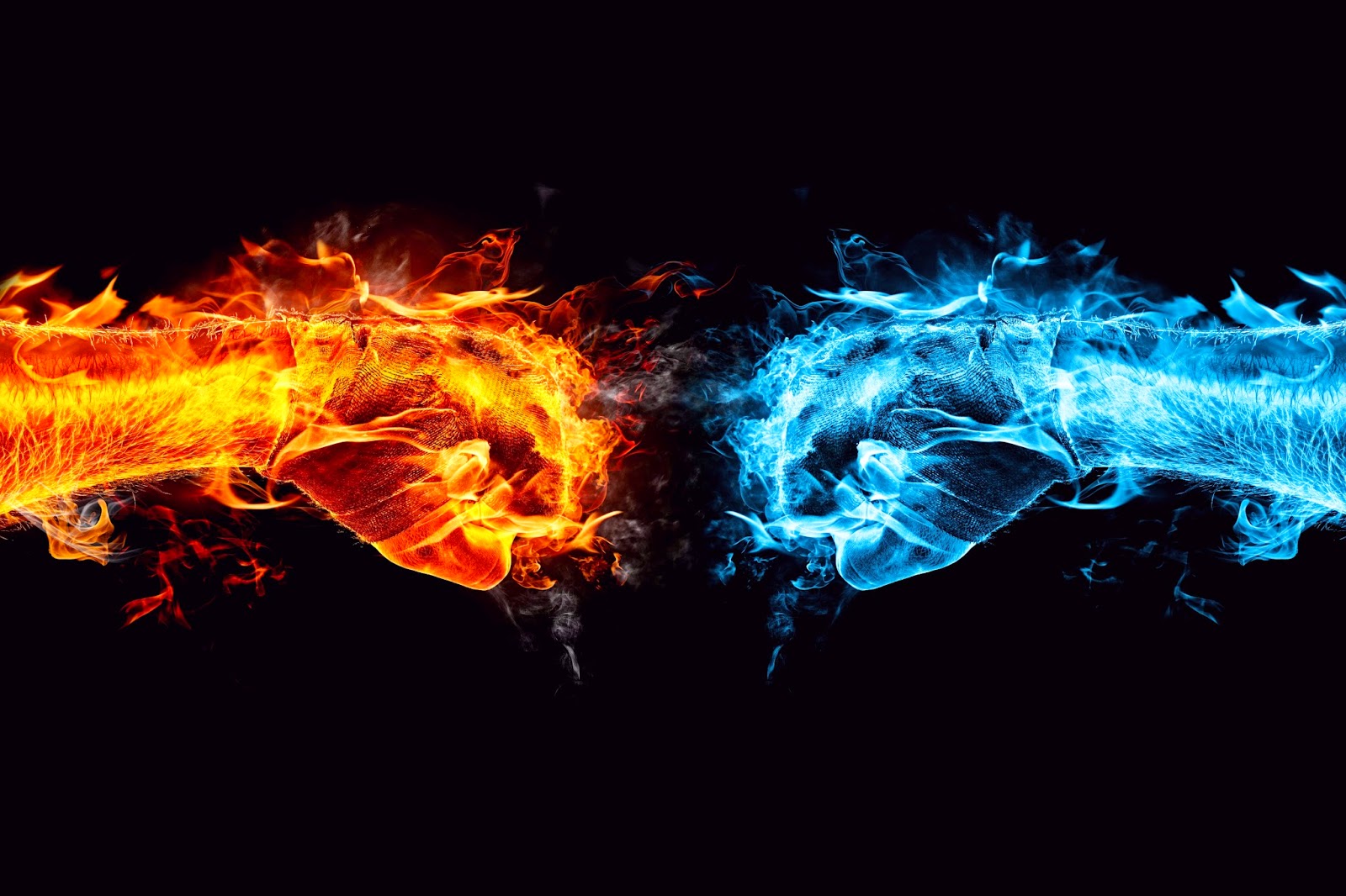 Description: Two different colored fire and ice on a black background.