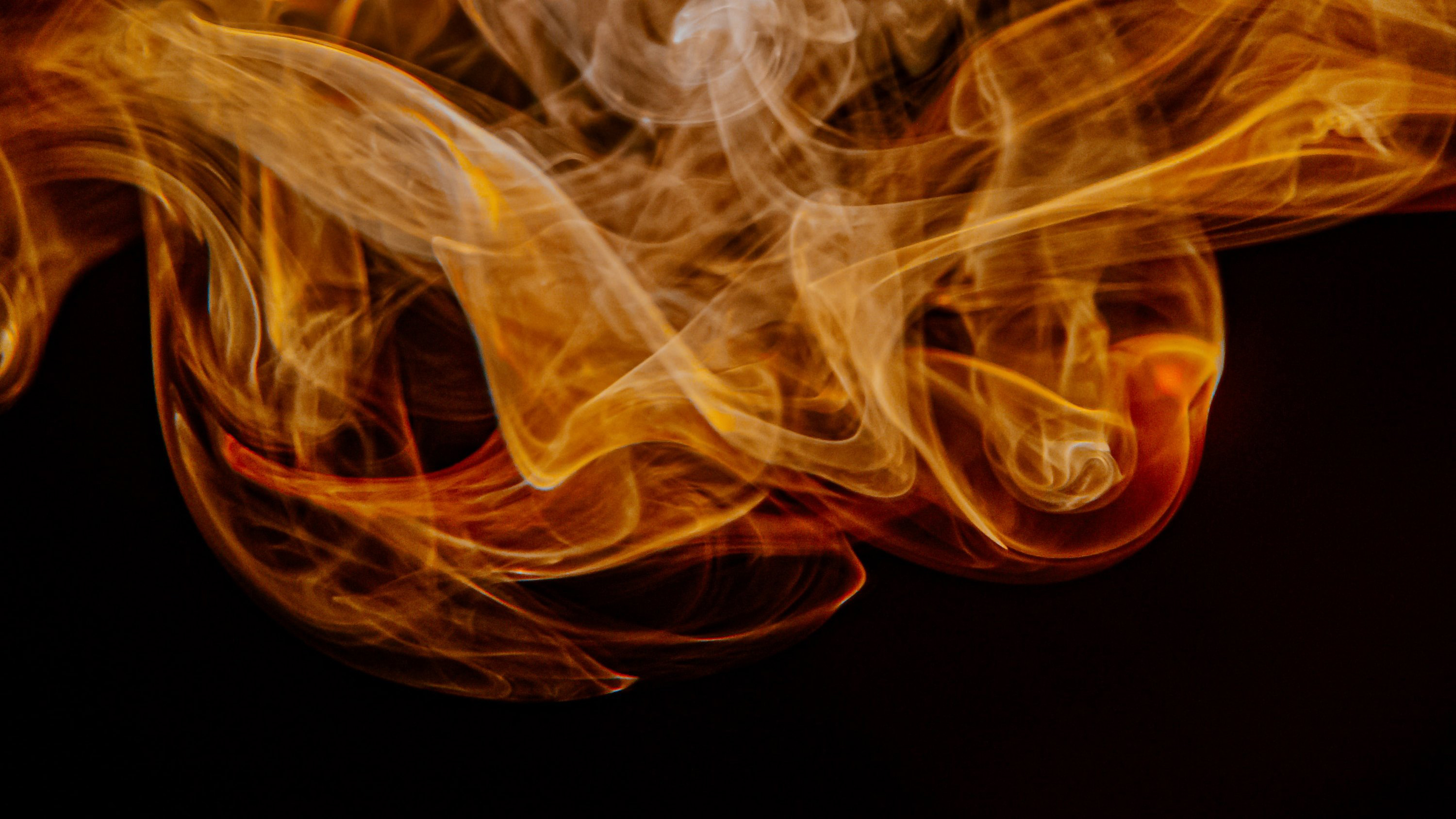 Description: A close up of a fire with a black background and a red background with a white border and a yellow and red swirl.