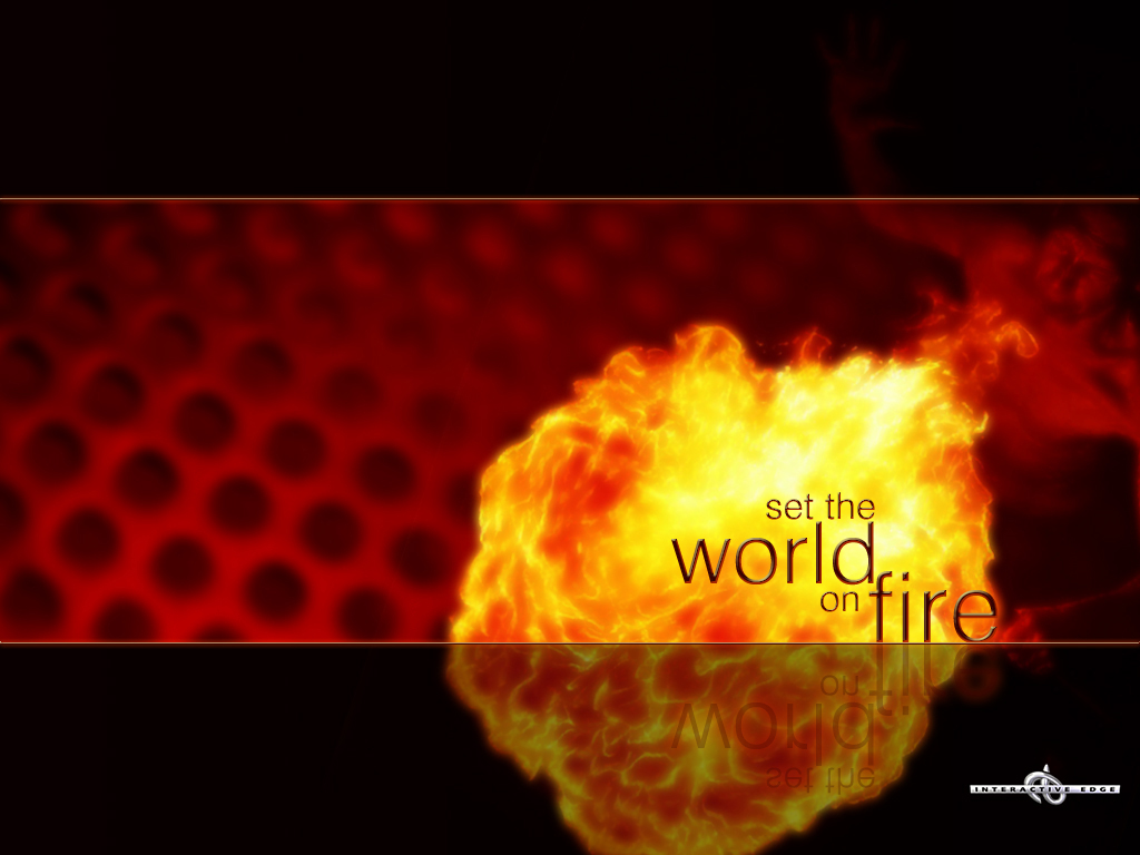 Description: A fireball with the words set the world on fire on it in front of a black background with a red and yellow stripe.