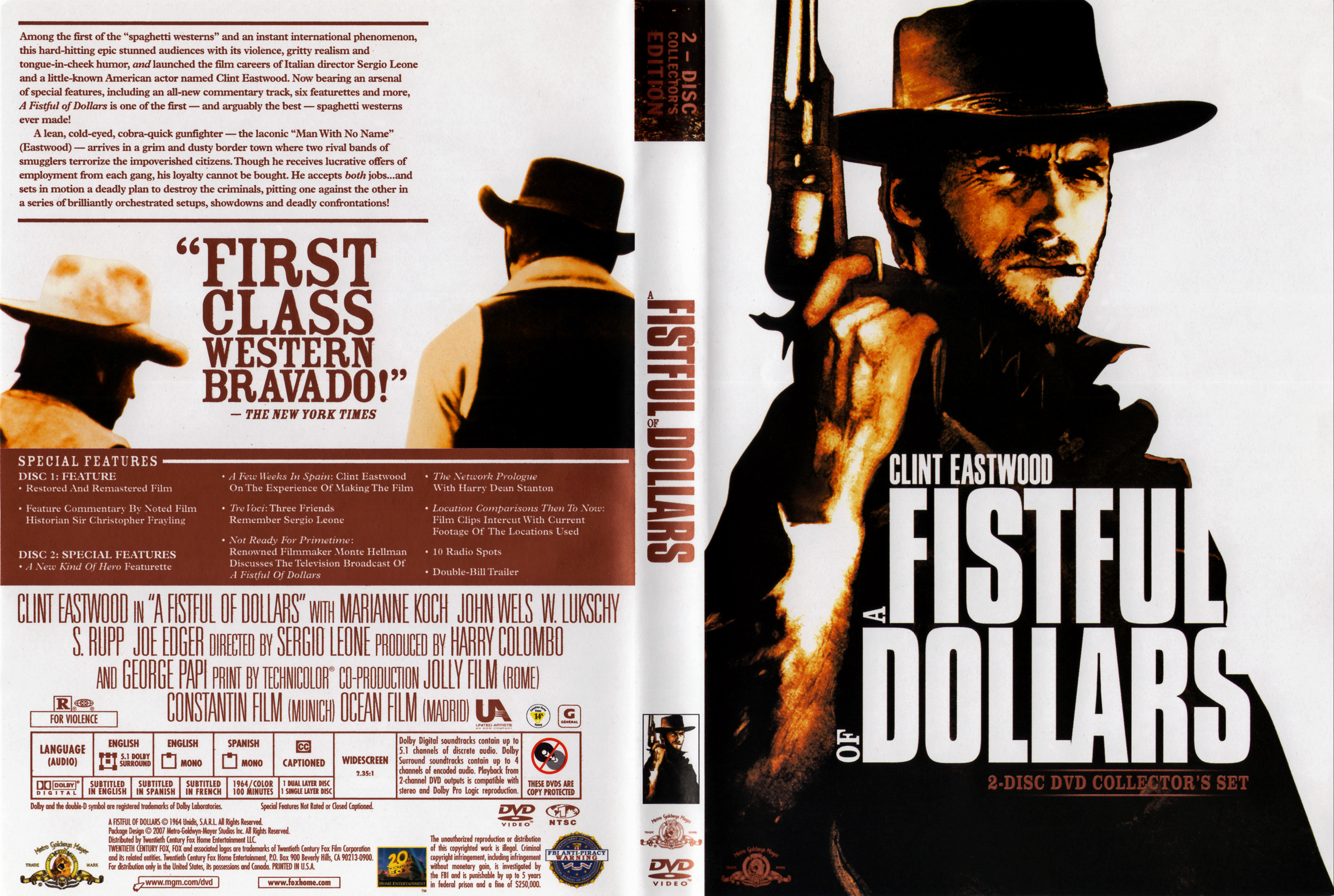 Description: A dvd cover for fistful dollars starring a man with a gun and a hat on his head and a gun in his hand.