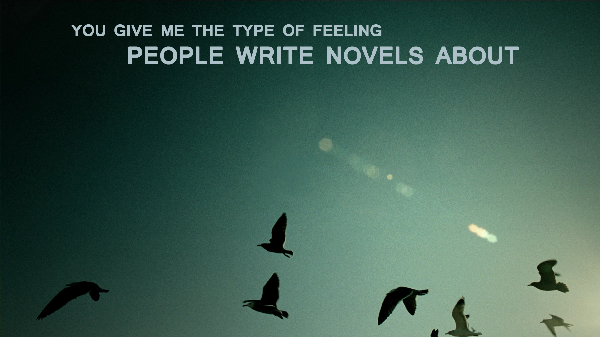 Description: A flock of birds flying through a blue sky with a quote above it that reads.