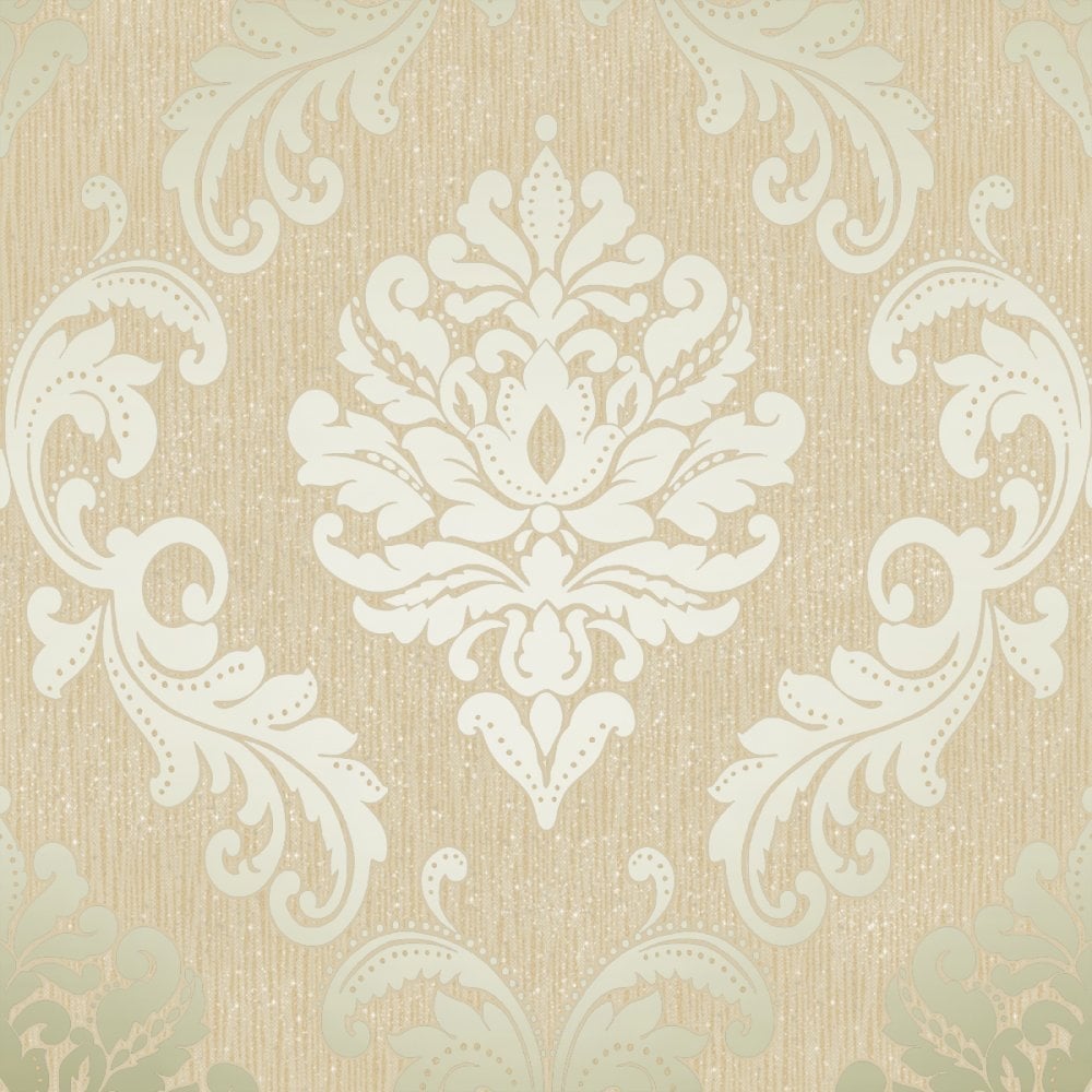 Description: A wallpaper with a floral design on it's side and a beige background with a light green border.