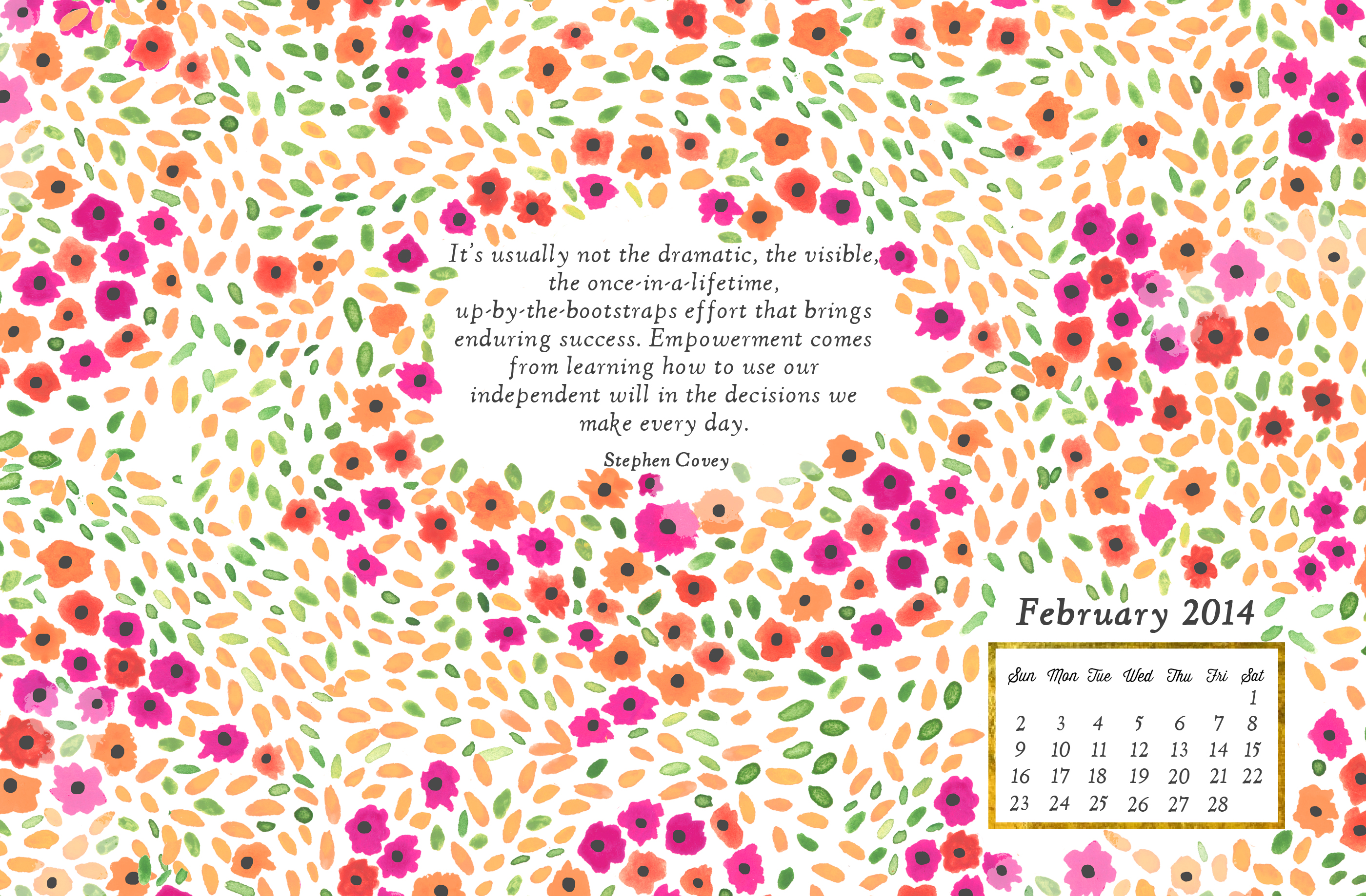 Description: A calendar with a floral pattern and a quote on it that says.