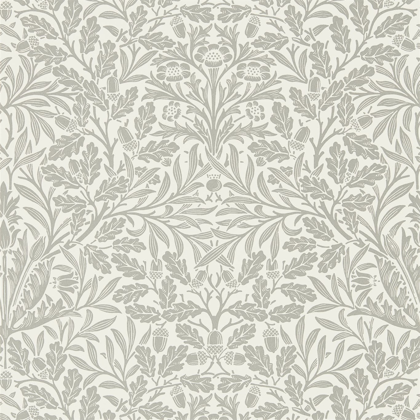 Description: A wallpaper with a floral pattern in grey and white colors.