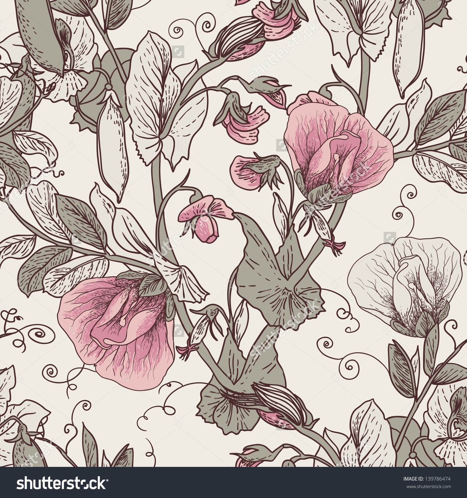 Description: A floral pattern with pink flowers on a white background stock photo - image of a flower pattern with pink flowers on a white background.