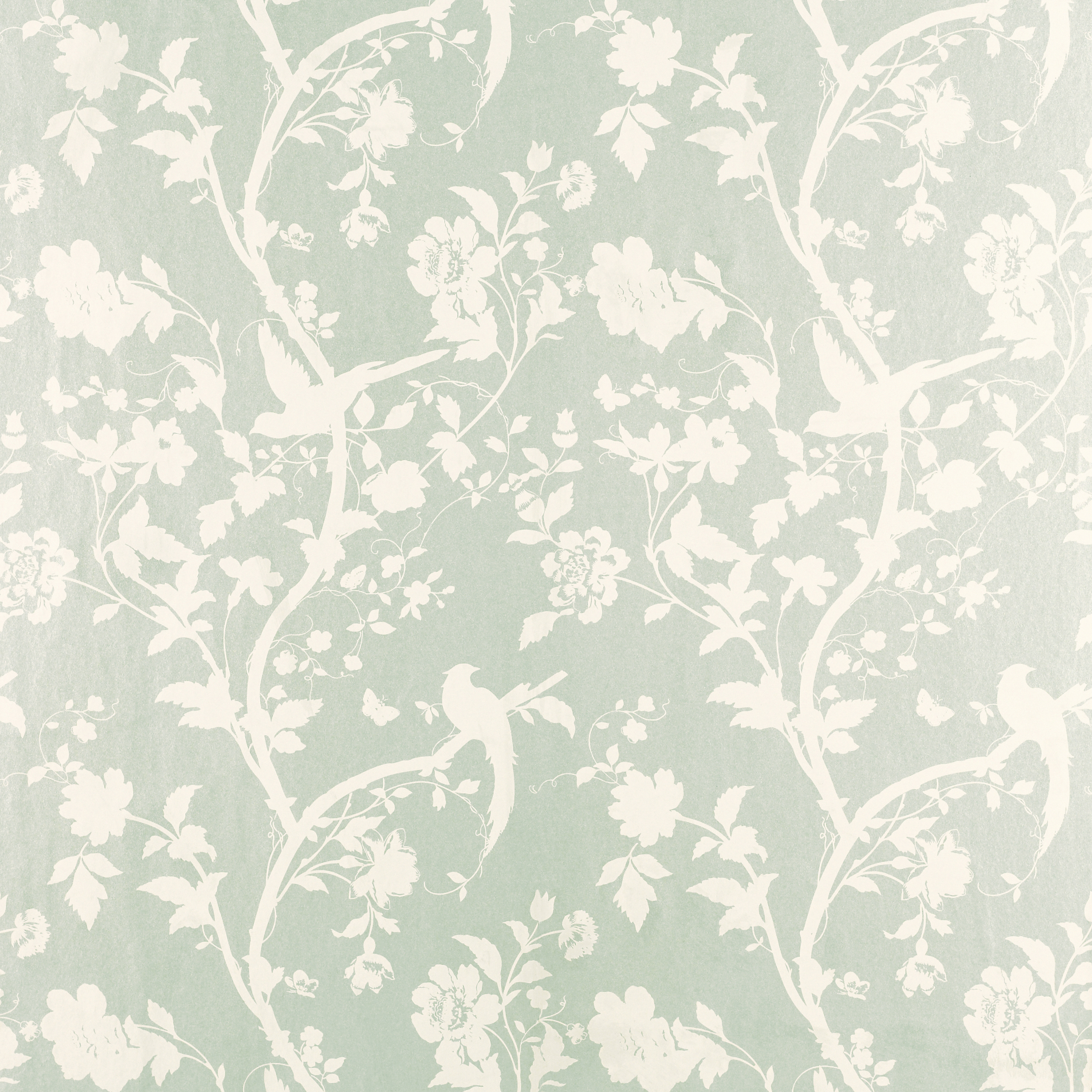 Description: A wallpaper with a floral design on it's side and a bird on the branch of a tree.