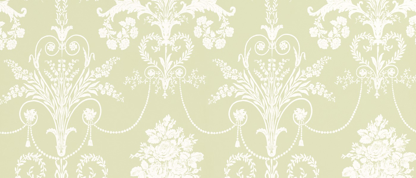 Description: A wallpaper with a floral design on it's side and a white background with a light green background.
