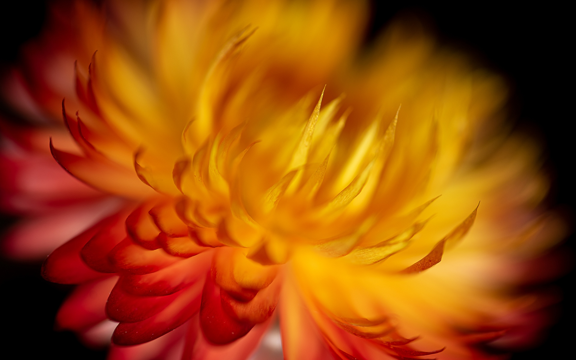 Description: A close up of a flower with a black background and a blurry image of the petals and petals.