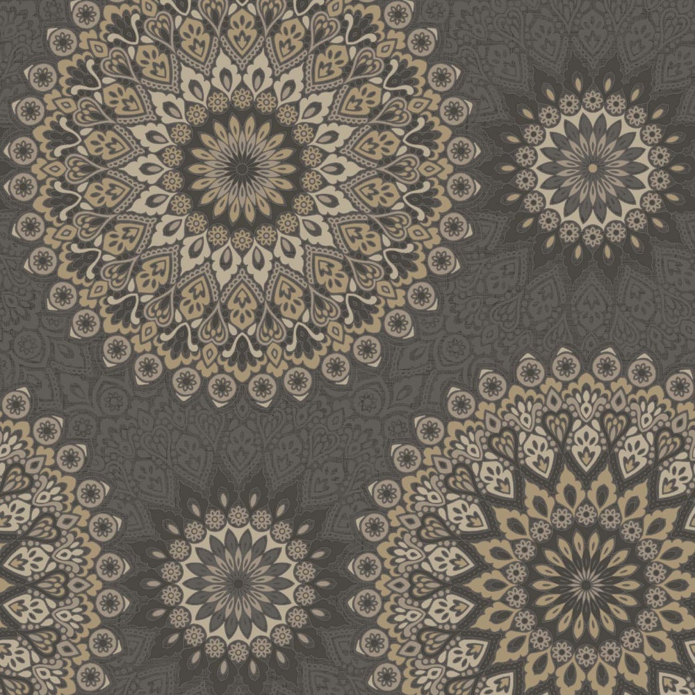 Description: A pattern of flowers on a gray background with a brown background and a brown and white background with a brown and beige design.