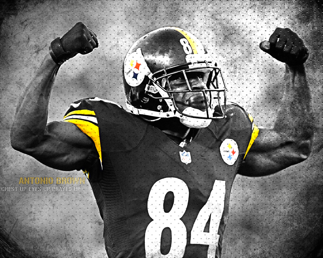 Description: A football player with his arms in the air and his hands in the air.