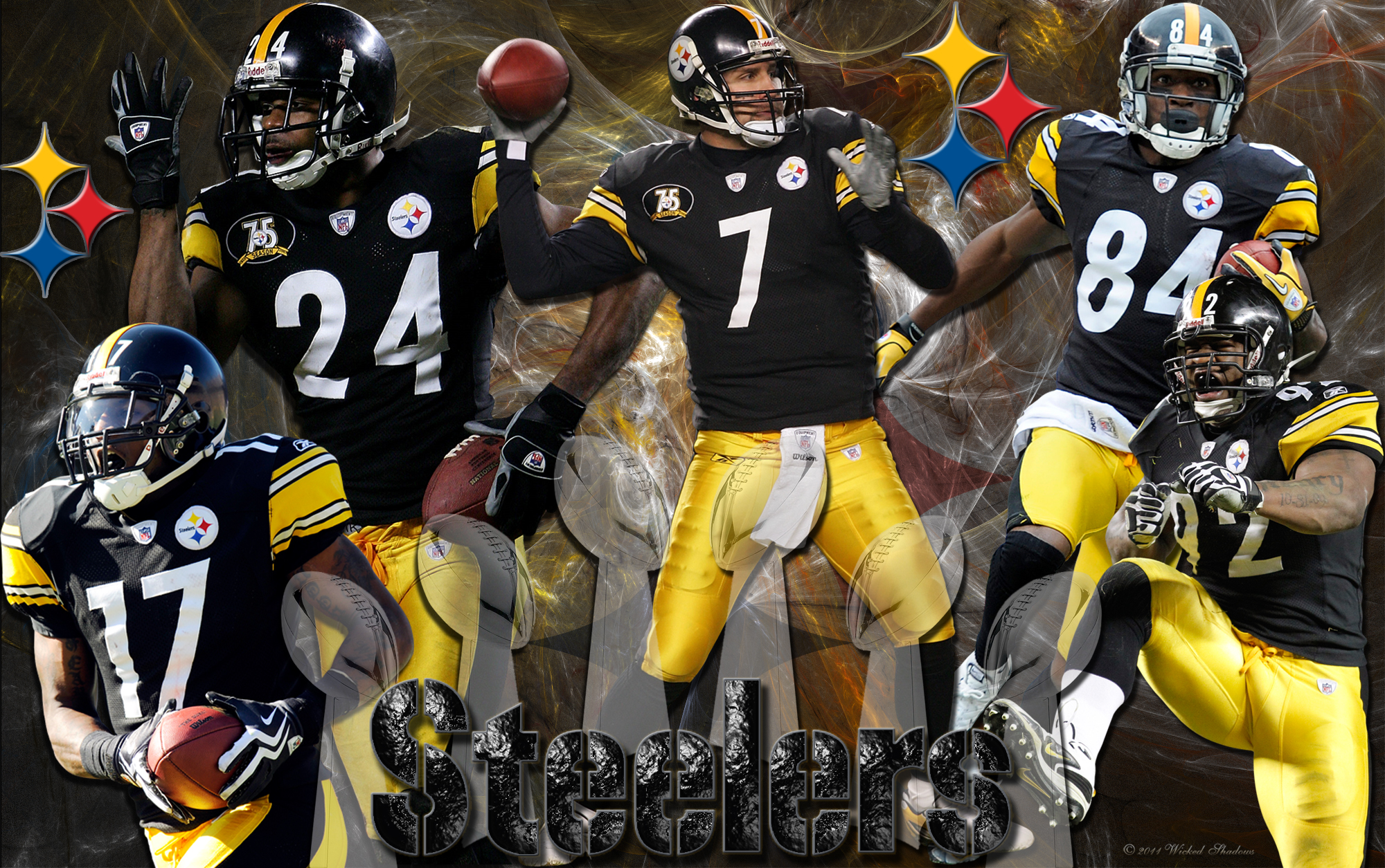 Description: A group of football players standing next to each other in uniform with stars on the background of the image.