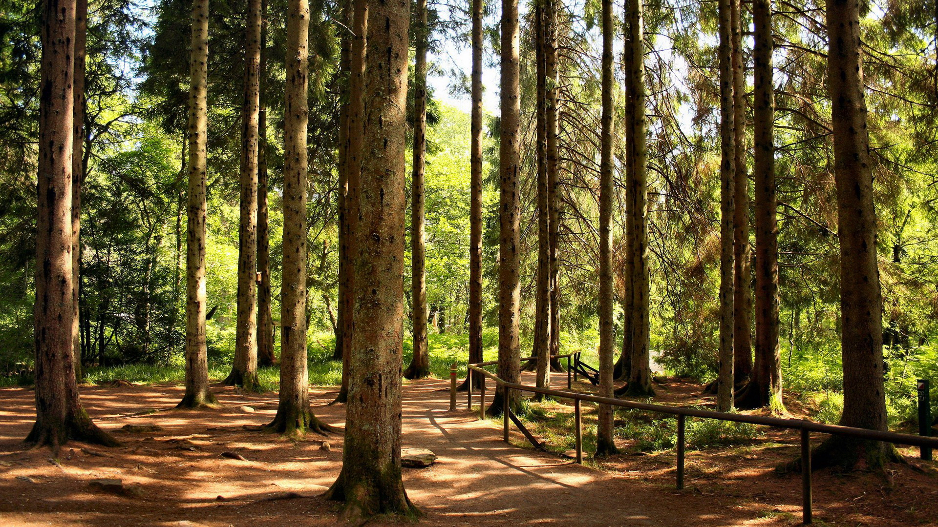 Forest path fence bench autumn free wallpaper for desktop - medium preview image