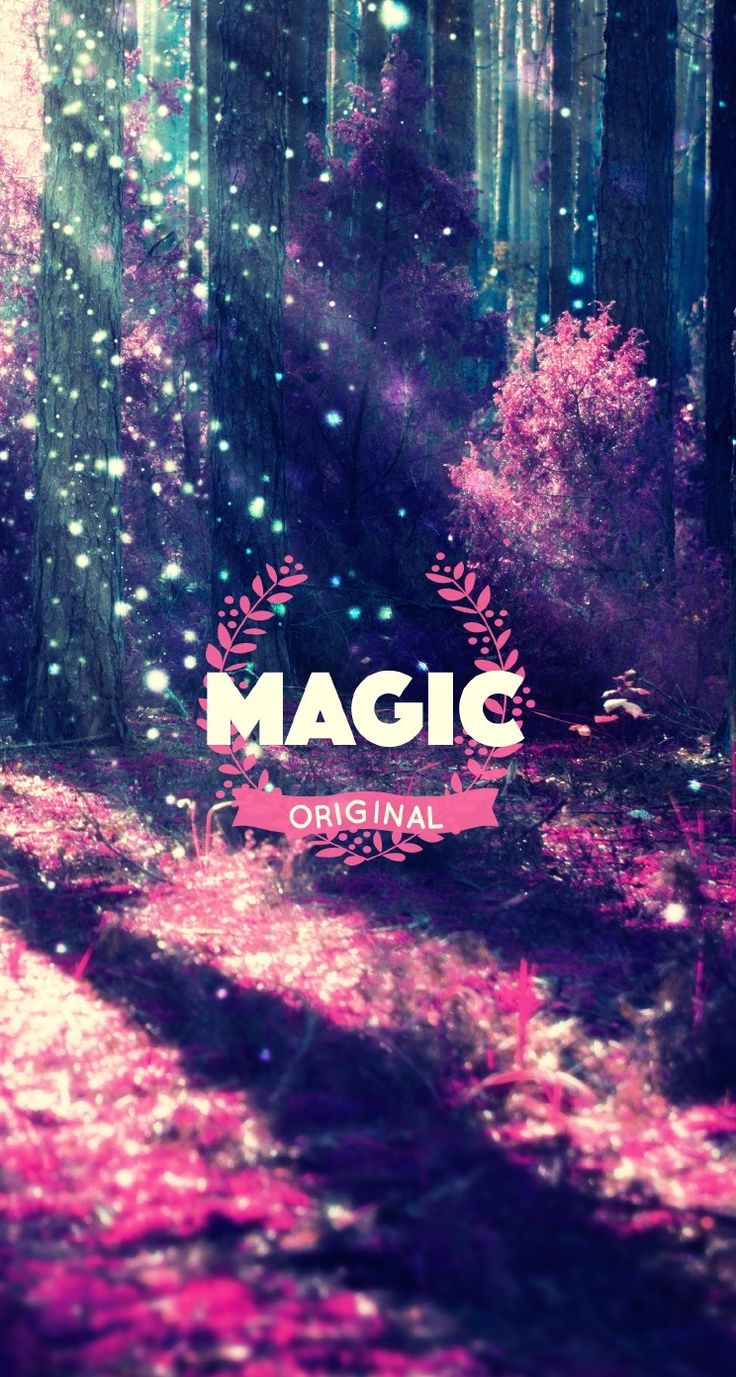 Description: A forest with a purple light and a purple background with the words magic written on it in the center.