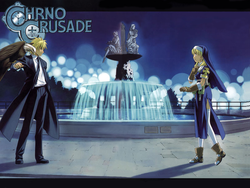 Description: A couple of anime characters standing in front of a fountain with a fountain in the background and a fountain in the foreground.