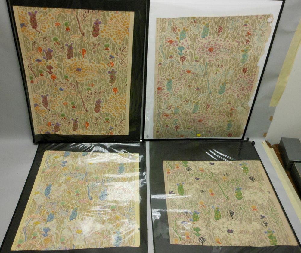 Description: Four framed art work with a variety of designs on them.