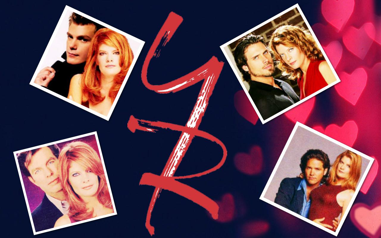 Description: A collage of photos of the cast of friends forever on a blue background with hearts and a red ribbon.