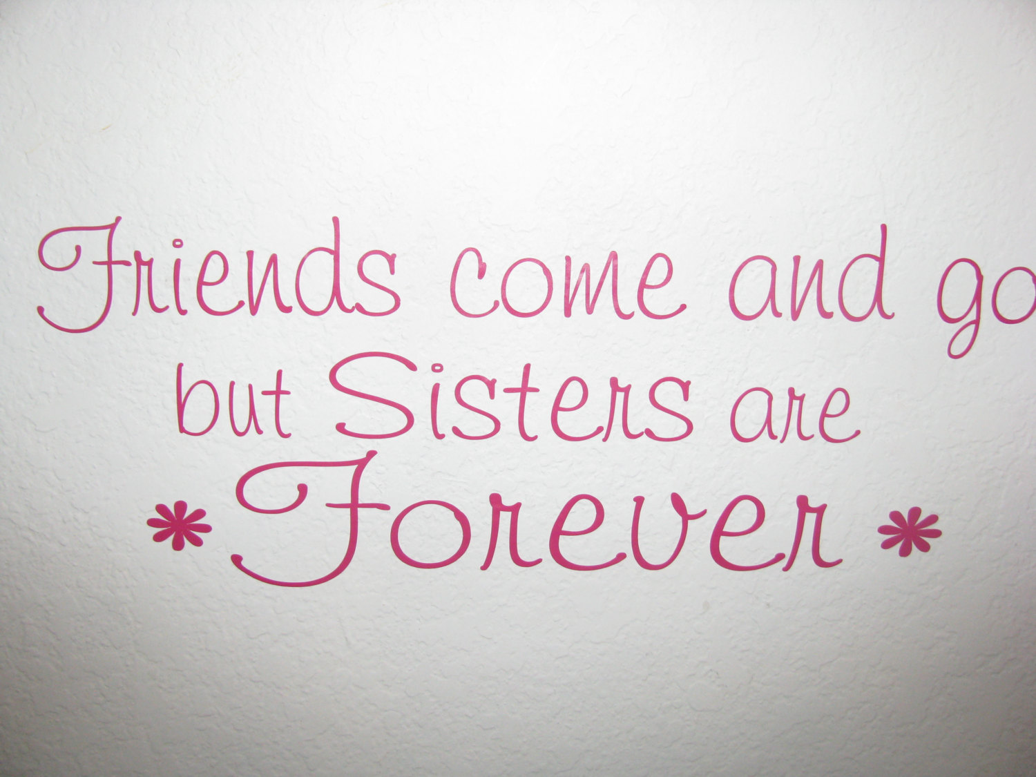 Description: A picture of a wall with a quote on it that says friends come and go but sisters are forever.
