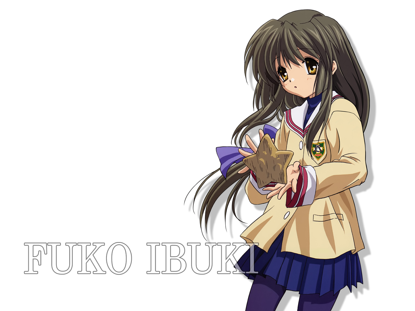Description: A girl holding a teddy bear in her hands with the words fuko tokyo on it's side.