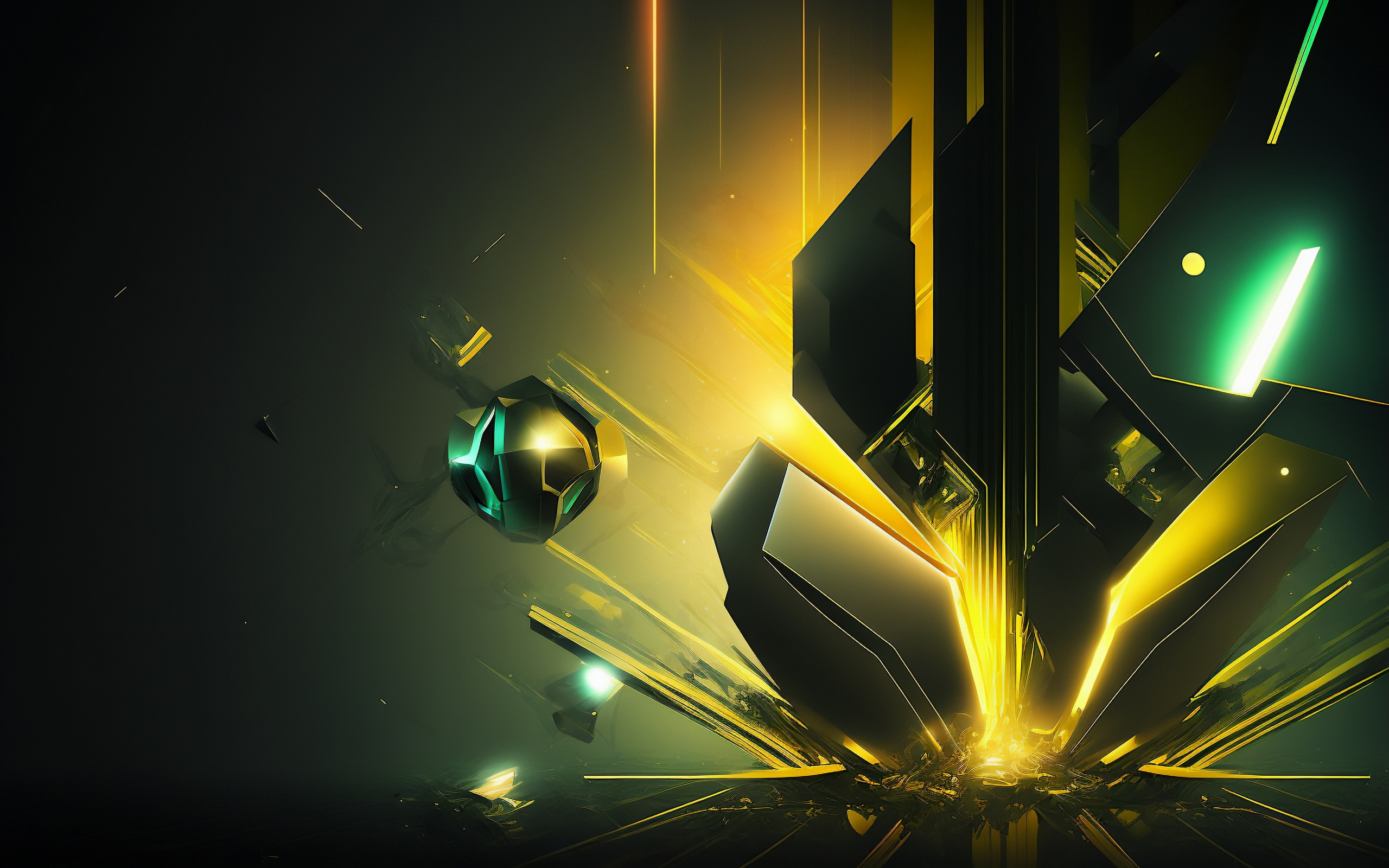 Description: A futuristic abstract background with a green and yellow design on it's side and a black background with a yellow and green design on the side.