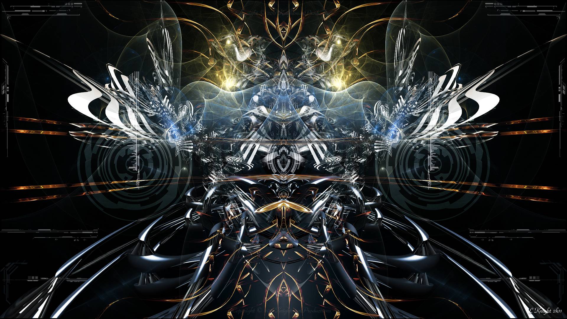 Description: A digital image of a futuristic design with a black background and gold accents and a black background with a white and yellow design.