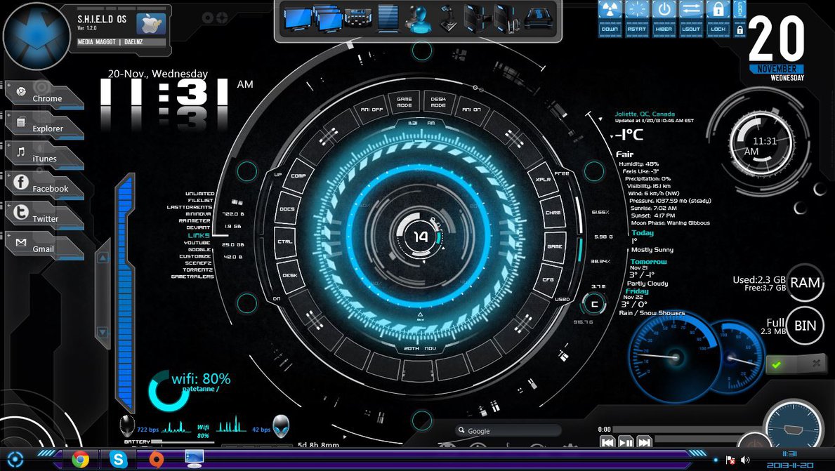 Description: A futuristic interface with a blue circle and numbers on it's side and a clock on the side.