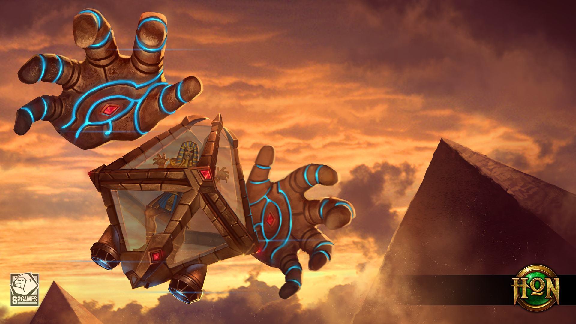 Description: A computer generated image of a futuristic object in the sky with a pyramid in the background and a pyramid in the foreground.