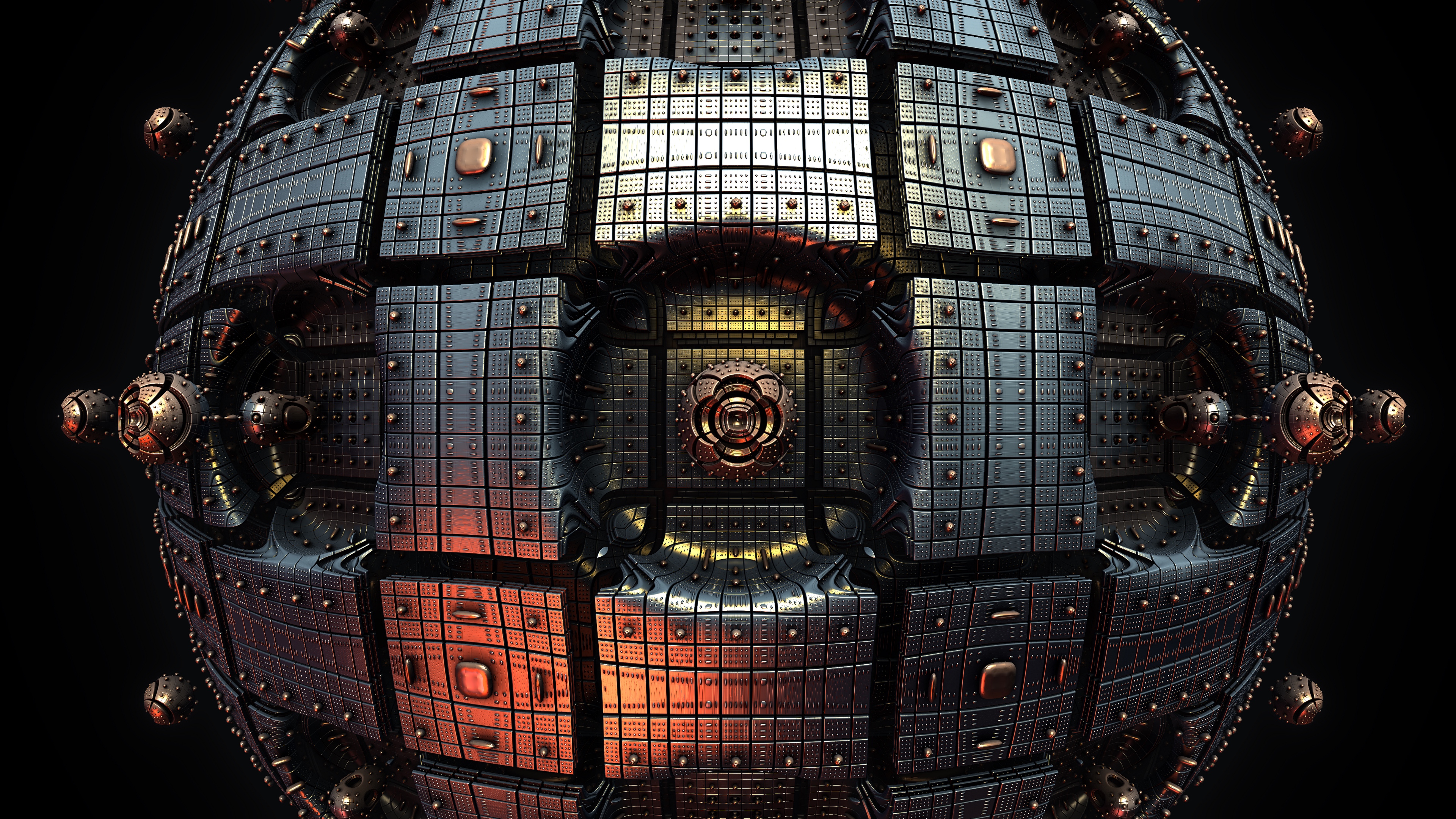 Description: A futuristic sphere with a metal structure and a red light at the center of it.