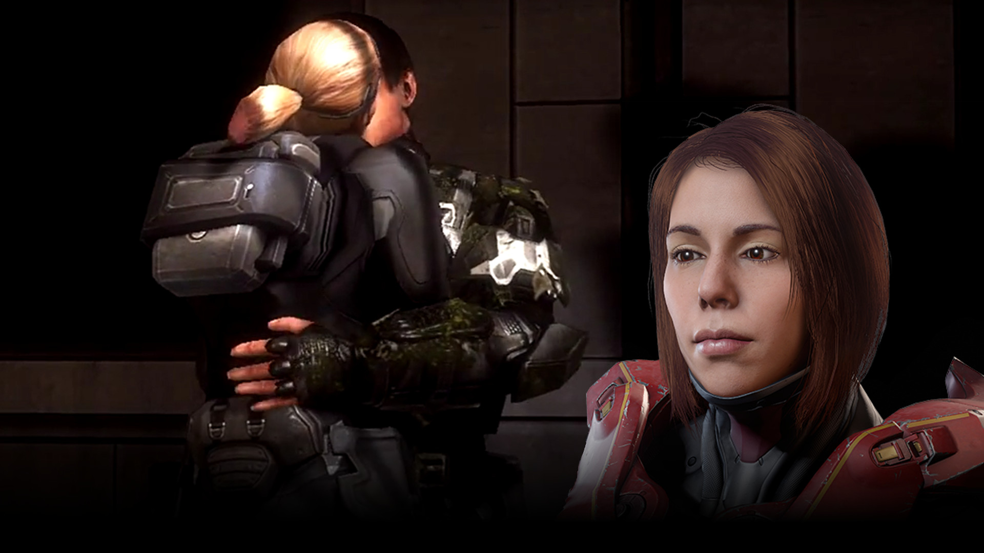 Description: A woman in a futuristic suit and a man in a suit with a gun in his hand and a sci - fi character in the background.