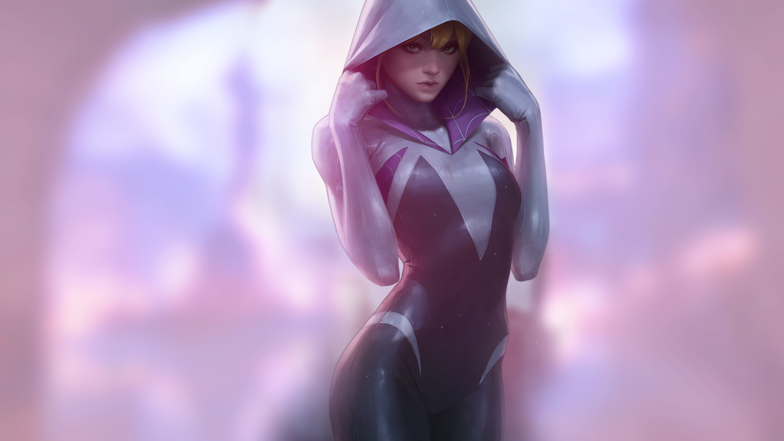 Description: A woman in a futuristic suit with a hood on her head and a hood on her head.