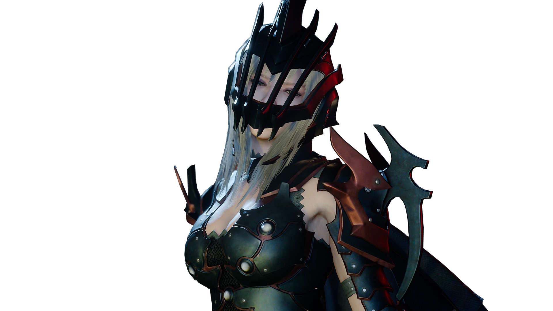Description: A woman in a futuristic outfit with spikes on her head and a sword in her hand.