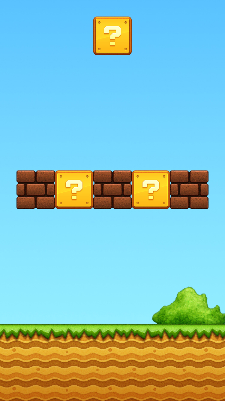 Description: A game with a question mark on the screen and a green hill in the background with a blue sky.