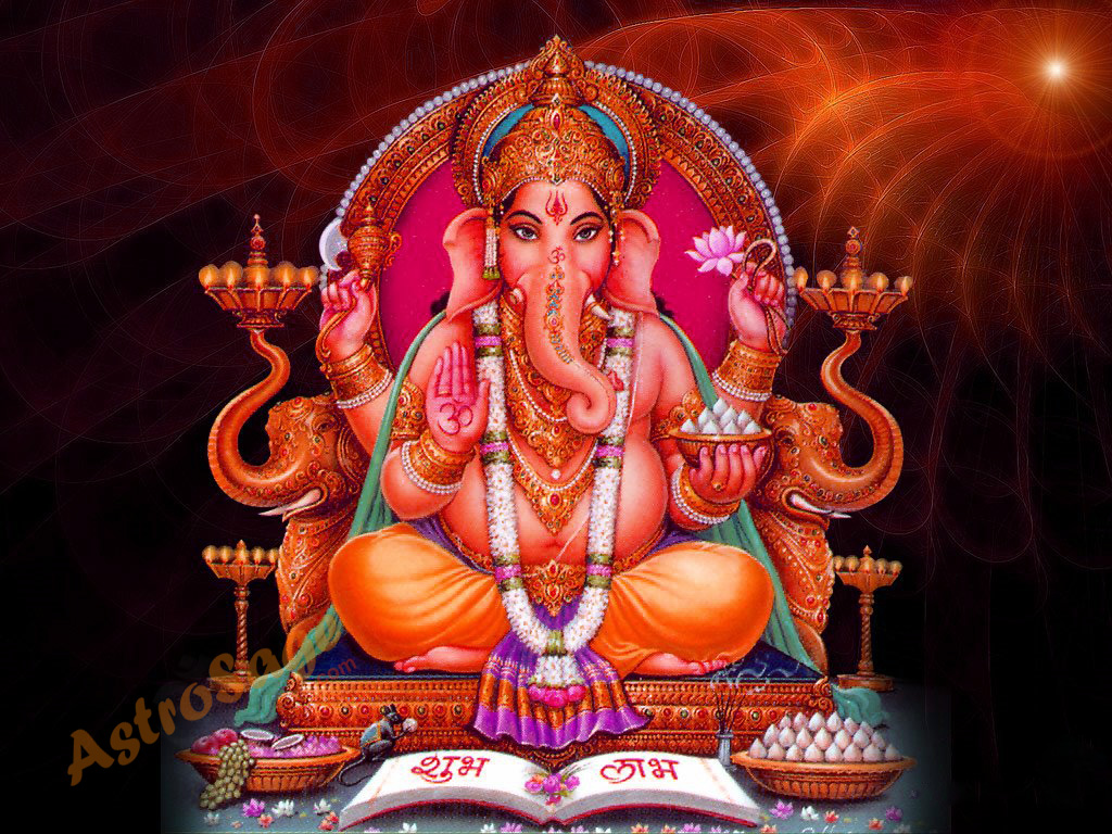 Description: A painting of a gandap with a light shining on it's face and a book in front of it.